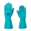 Luva de segurança confeccionada em nitrila, relevo antiderrapante na face palmar e ponta dos dedos.